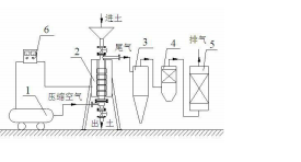 土壤通风-立式解吸炉修复有机污染土壤的系统,其特征在 于 :所述筒体安装方式为立式,进料斗和进气管设于筒体顶 部,出料管和布风装置设于筒体底部。
