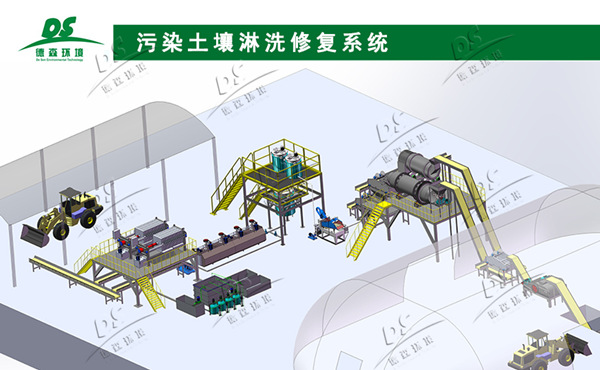 污染土壤淋洗修复主要是借助能促进土壤中污染物溶解或迁移的化学/生物溶剂,通过一系列物理、化学的综合处理工艺对污染土壤进行洗洁修复处理,将附着于土壤颗粒表面的重金属由固相低浓度污染物转移至液相,以便于后续集中处理。土壤中砂石骨料经淋洗分级处理后可回收利用,淋洗泥浆经脱水后泥浆固料若检验达标可安全回填、或进入热脱附修复系统进一步处理,脱水后废液进入水处理系统集中处理。整套淋洗修复系统可最大程度实现对污染土壤的减量化综合处理。